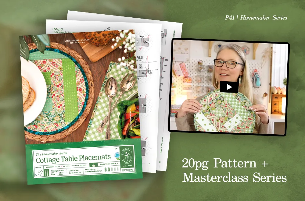 The Cottage Table Placemats help you grow your skills while adding handmade charm to your table. This pattern includes two designs that introduce you to the joy of quilt-as-you-go and the satisfaction of neat, beautiful binding.