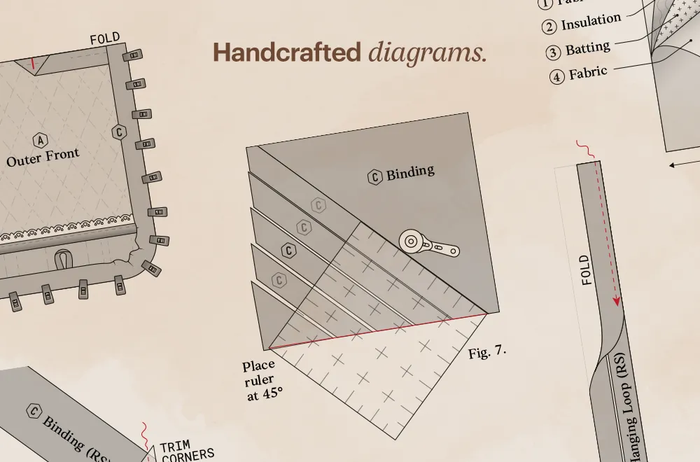The Sunday Baking Potholders are one of Ali’s most loved early designs — simple, functional, and made to be used. They’re quick to sew, beginner-friendly, and built to handle real kitchen heat, everyday spills, and years of washing.