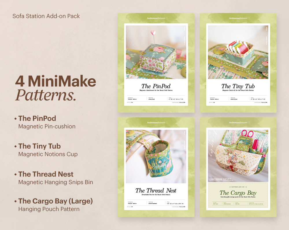 From secure pin storage and tiny notion containment to thread-catching and extra tool space, each piece is designed to keep your sofa sewing calm, tidy, and beautifully organised.