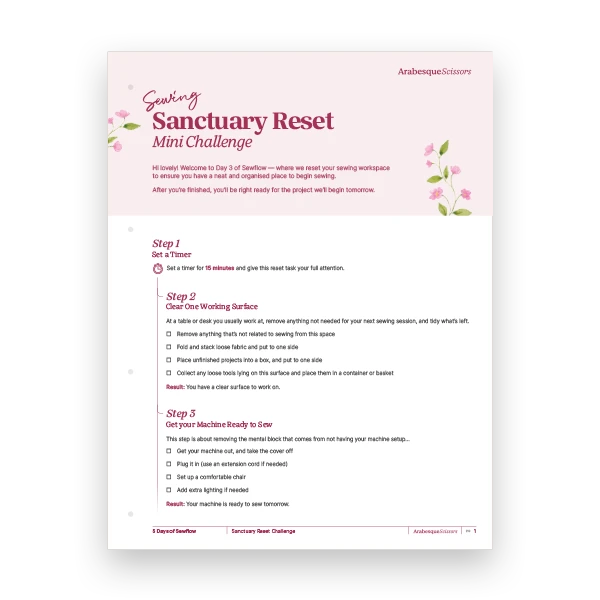 Create a clear, ready-to-use sewing space with this satisfying 15 minute challenge. Then follow the Cargo Bay shopping list (included), to gather all your materials, so you're ready to sew this project with me tomorrow.