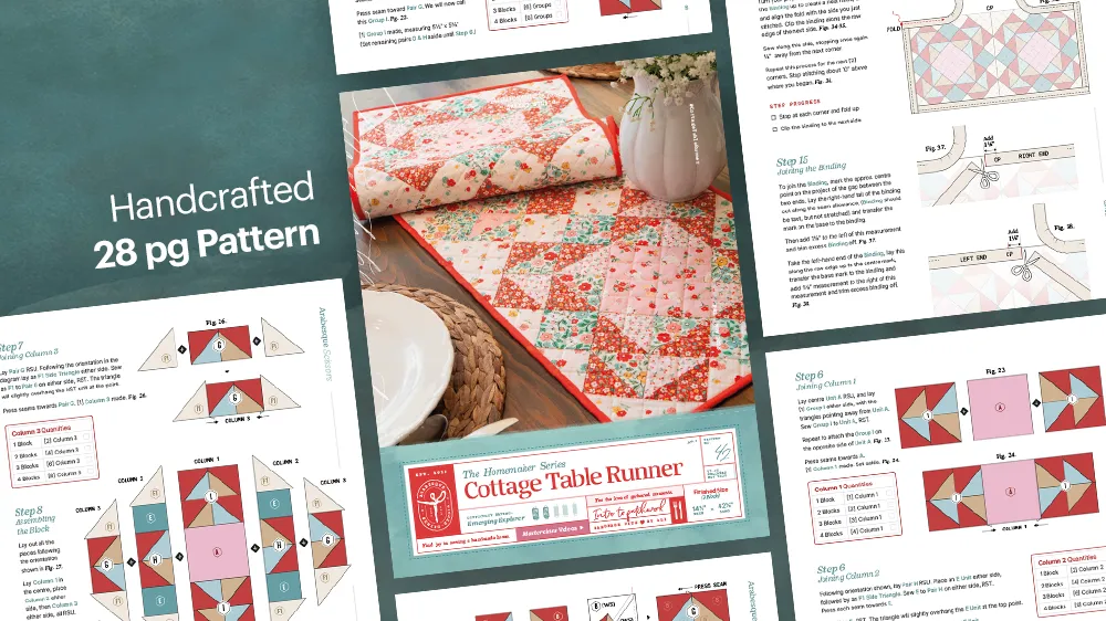 With pressing guidance, nesting tips, trimming instructions, and clear binding steps, you’ll achieve a runner that looks beautifully refined. It’s a make you’ll be proud to place on your table year after year — or to gift to someone special.