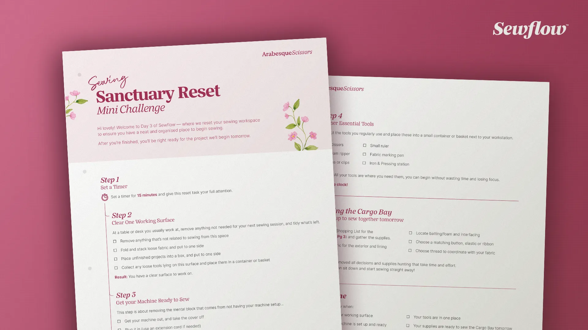 Create a clear, ready-to-use sewing space with this satisfying 15 minute challenge. Then follow the Cargo Bay shopping list (included), to gather all your materials, so you're ready to sew this project with me tomorrow.